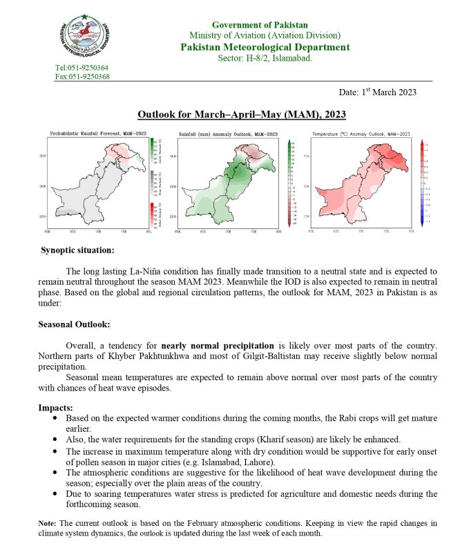 Source: Pakistan Meteorological Department – Outlook for March–April–May (MAM), 2023